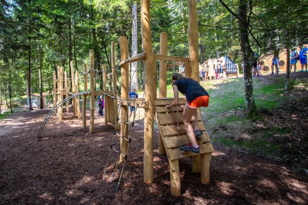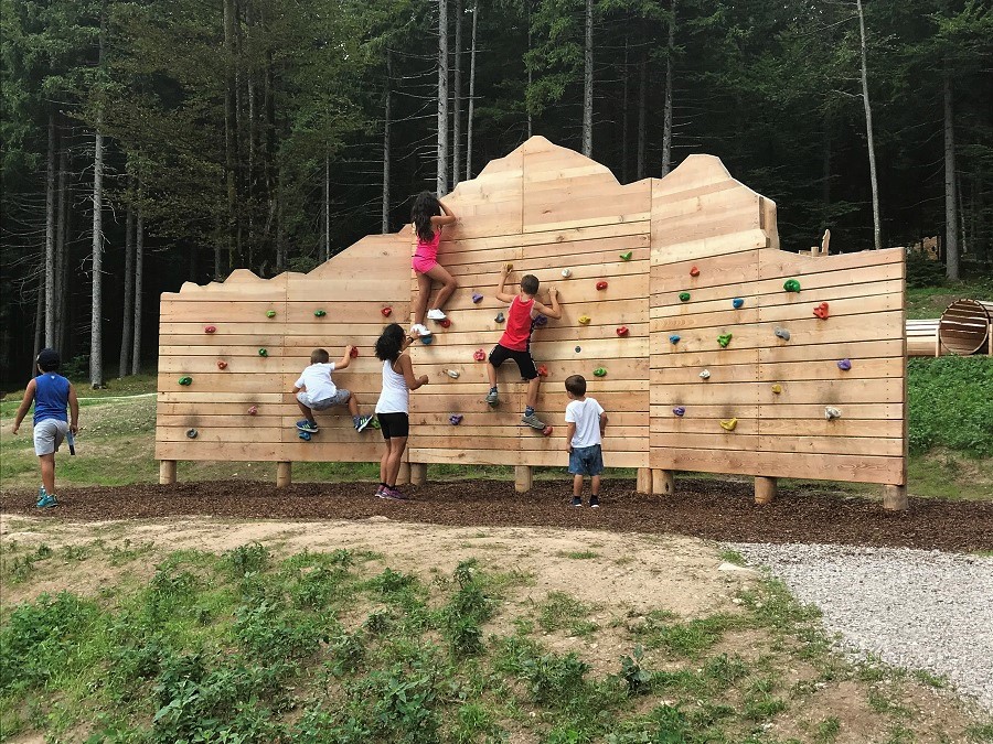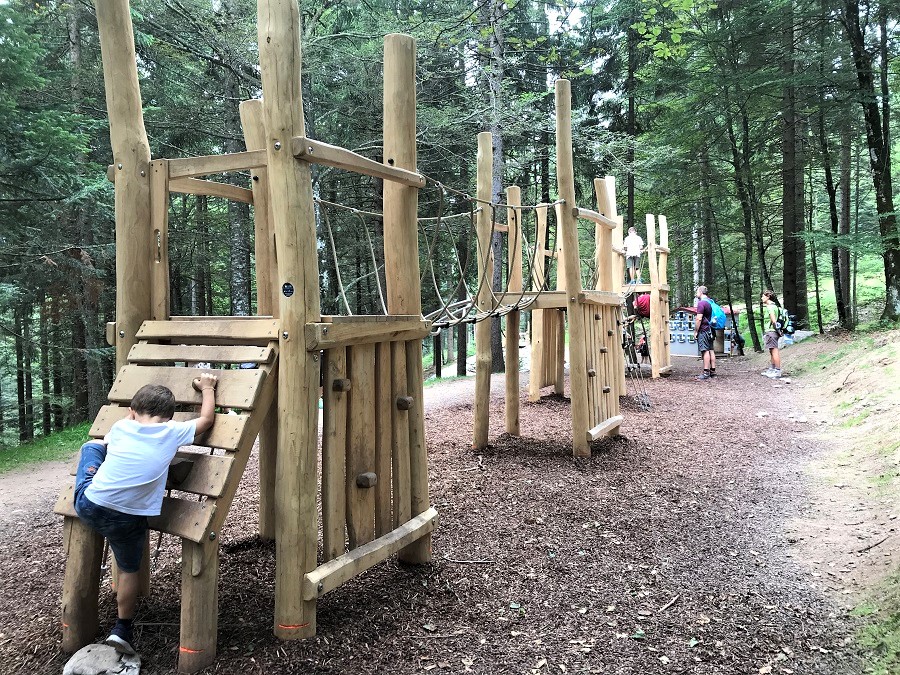 Alcune attività del percorso sono utilizzabili solo da bambini grandicelli (scalate, lunghi scivoli, ponte tibetano).