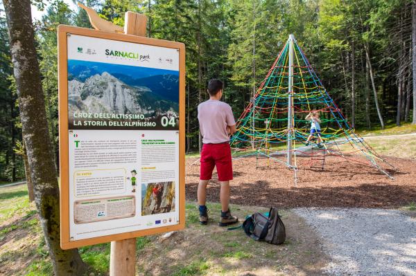 Il percorso del Sarnacli Mountain Park non è adatto ai passeggini ne a disabili in carrozzina (I sentierini che collegano le installazioni sono in terra battuta in pendenza. In un punto il percorso è dedicato all’installazione kneipp e in un altro punto presenta scalini di roccia).