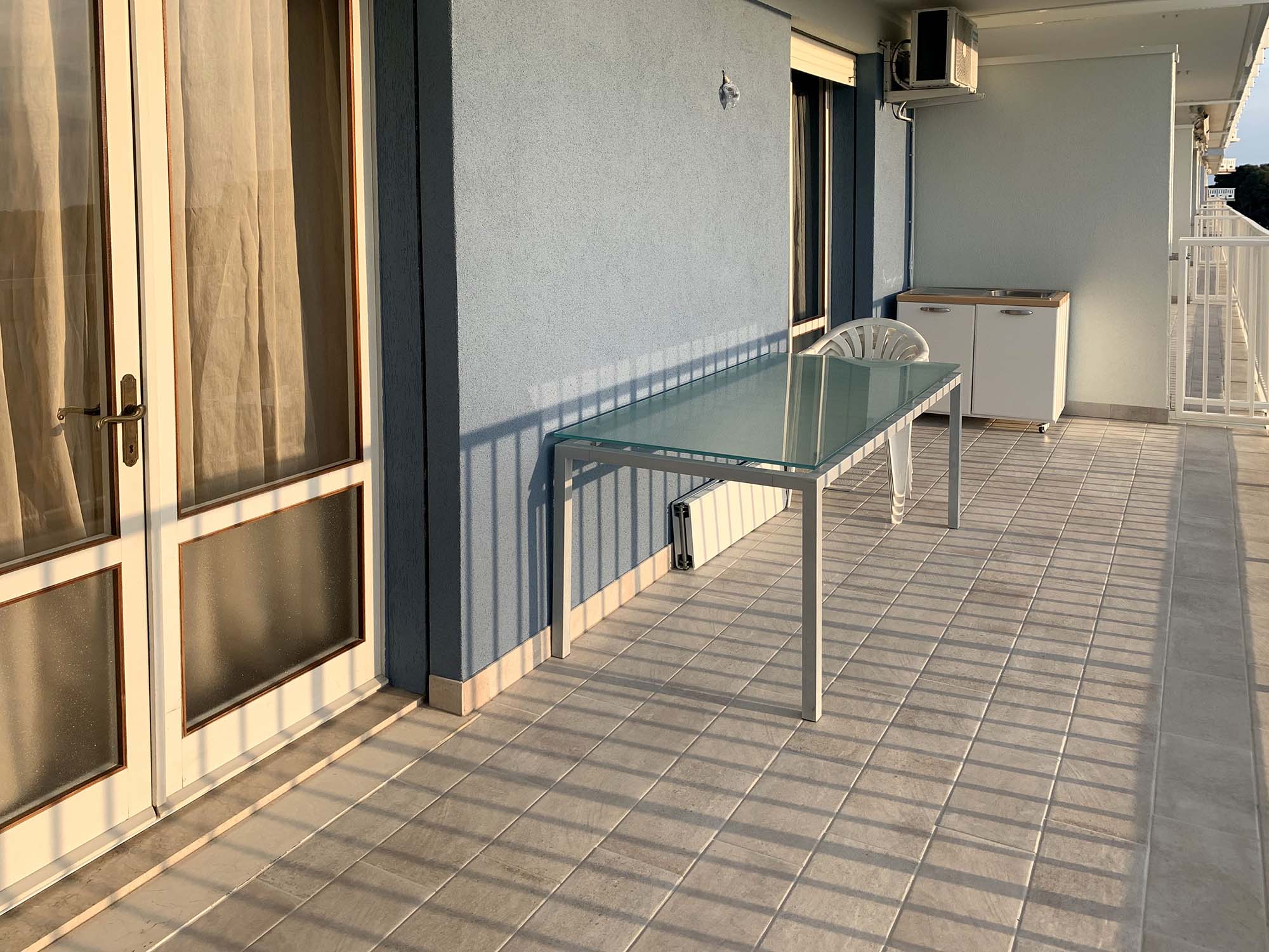 Appartamento al 4 piano con doppio ascensore, dotato di aria condizionata, lavatrice, lavastoviglie, BBQ, terrazzo e posto auto privato.